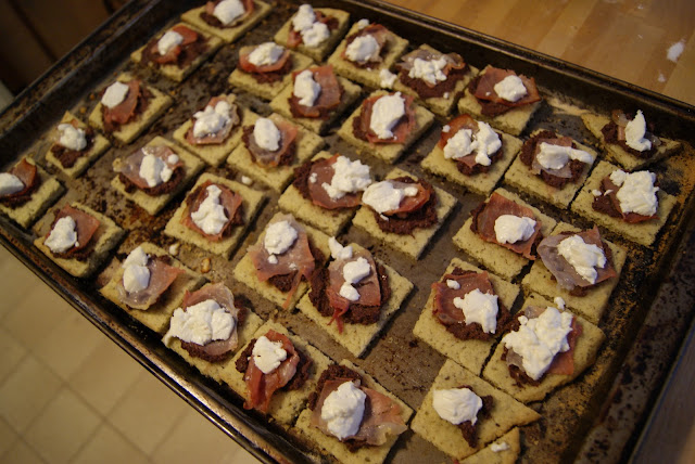 Top each square with 1/4 to 1/2 tsp tapenade.