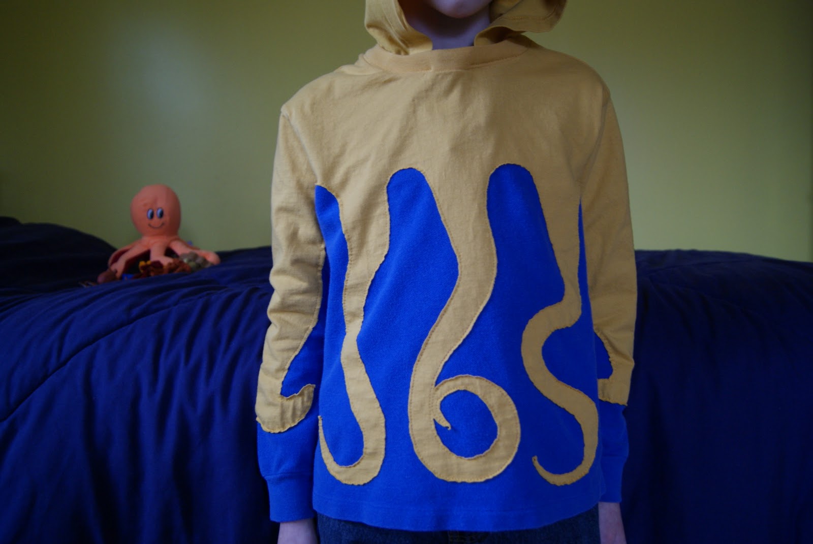 So the octopus was my inspiration for the boy challenge this week. I came up with an octopus hooded pullover long sleeved shirt.