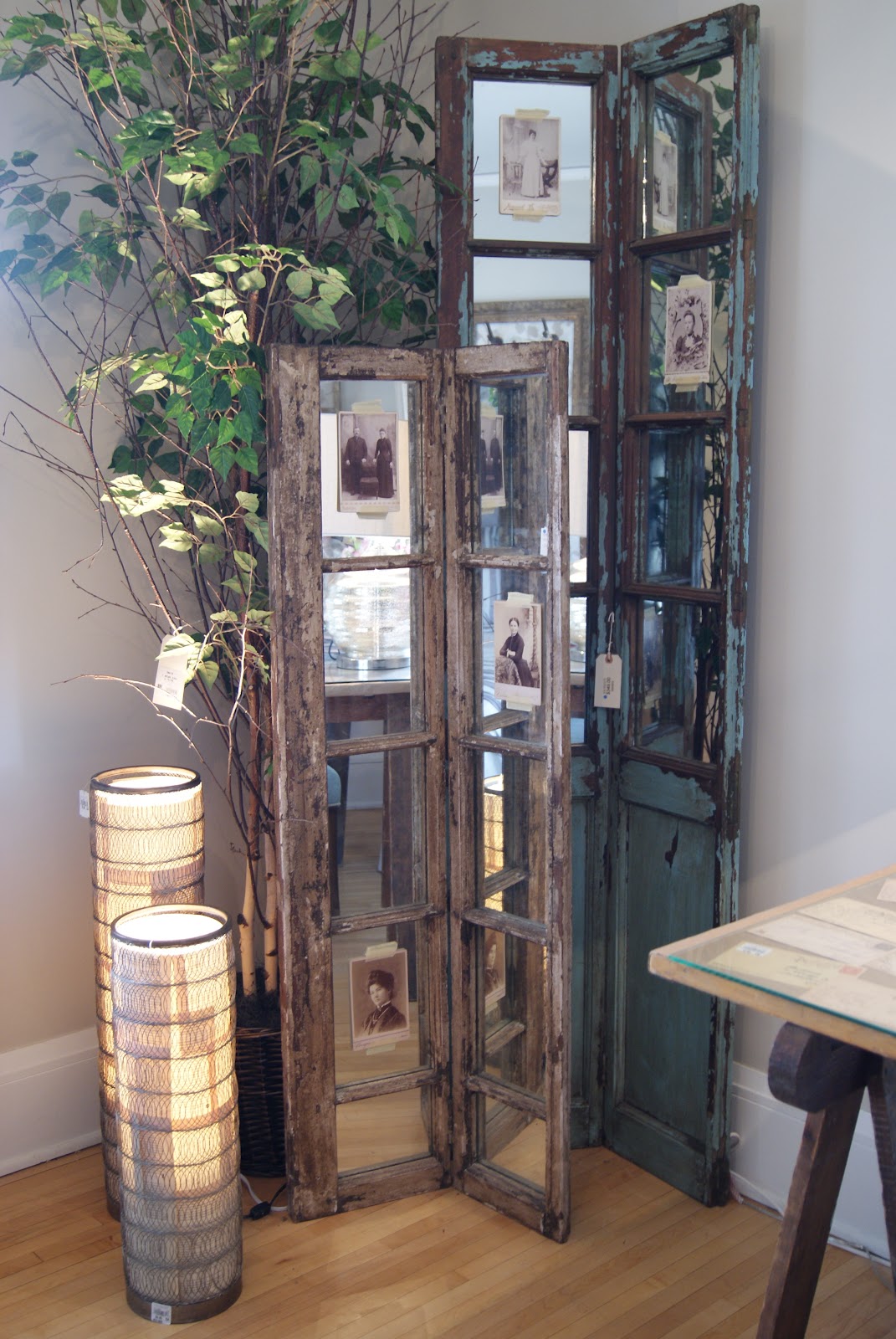 In the main floor bathroom: collage of vintage-inspired mirrors