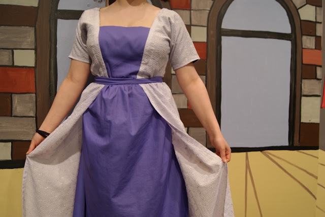 Costume sewing again... this time it was a 1910s tea gown for a teenage girl who performed in The Music Man Junior musical which takes place in the summer of 1912. This is another musical that my oldest son took part in & I volunteered to help out with costumes (again). Another learning experience for me as I've never sewn a dress with this construction before, the pattern is from Sense and Sensibility (when I have more time I want to have a look around & see all their other patterns...) Anyway, this tea gown was made out of lilac eyelet, purple cotton, complete with an invisible zipper (shhh, don't tell anyone that invisible zippers didn't exist back in 1912, but that's what the pattern called for & the back of the gown looks lovely with it). The gown fit perfect (!) which is always a joy since no alterations were needed & looked beautiful under the theatre lights.