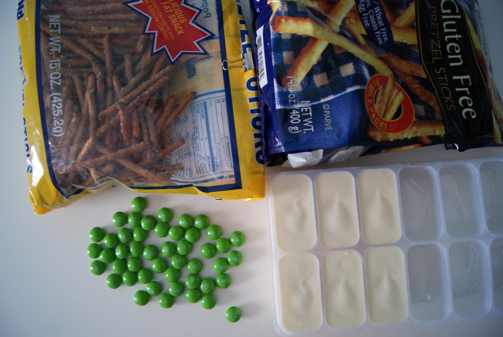 :: homemade green eggs & ham (bacon) candy = white (vanilla) candy melt, green Skittle with 2 pretzel sticks which can easily be made gluten-free by using gluten-free pretzel sticks