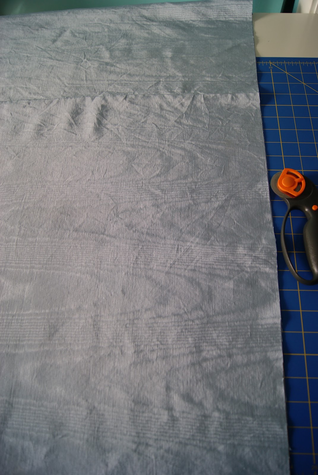 With a rotary cutter cut off 24 inches up from the hem, this will become the skirt of the Cinderella dress. Since the bottom of the bridesmaid dress is already hemmed, you will not need to hem the bottom of the Cinderella dress (this will save to time & work).