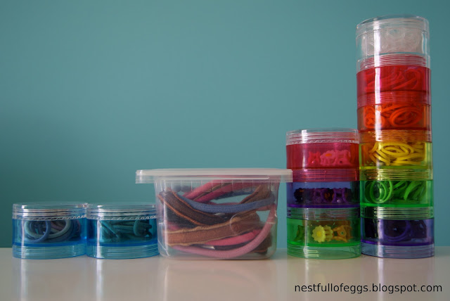 Girls hair rubber band color coded storage