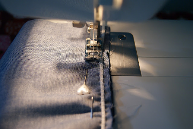 :: Pin together the bottom piece to the middle piece & sew together with 1/2" seam